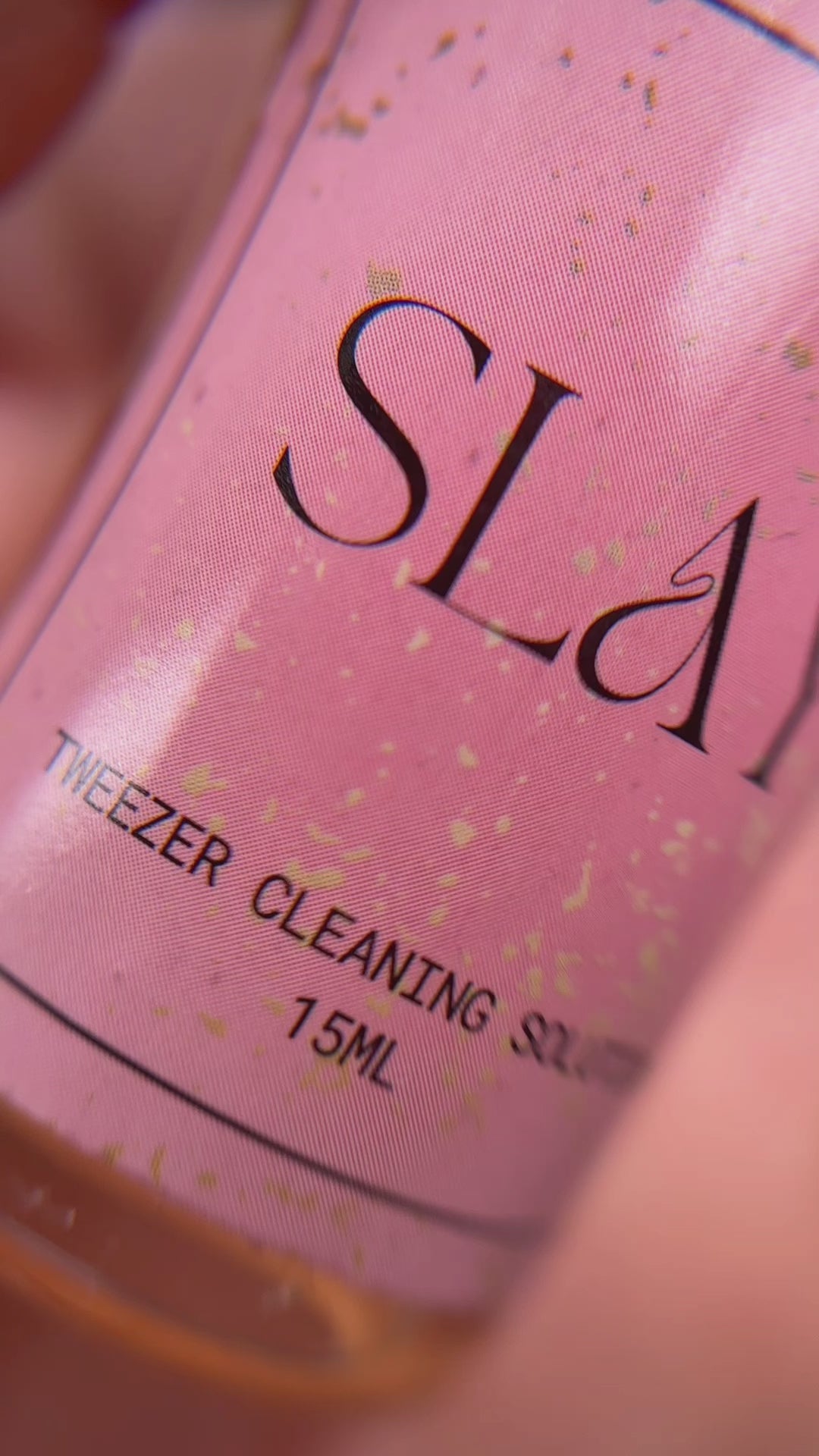 Our chemical disinfectant takes all the dry or wet adhesive off of your tweezers in 10 seconds or less.